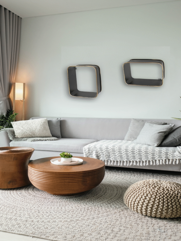 Stunning circular wall shelf with 3 tier shelves. Each shelf has a limit of 10 lbs. Rusty finish iron frame and solid wood shelves.
