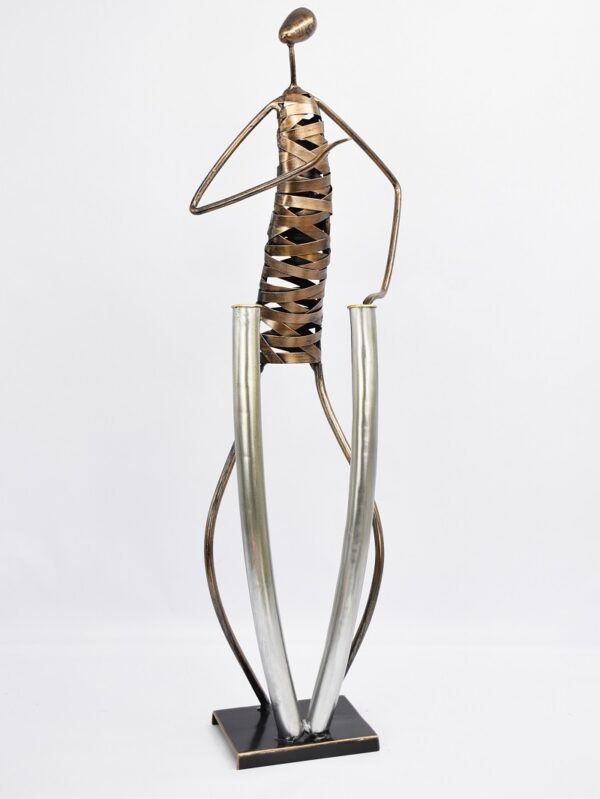 Abstract Tribal Lady Figurine Metal Sculpture On Head with Solar LED light