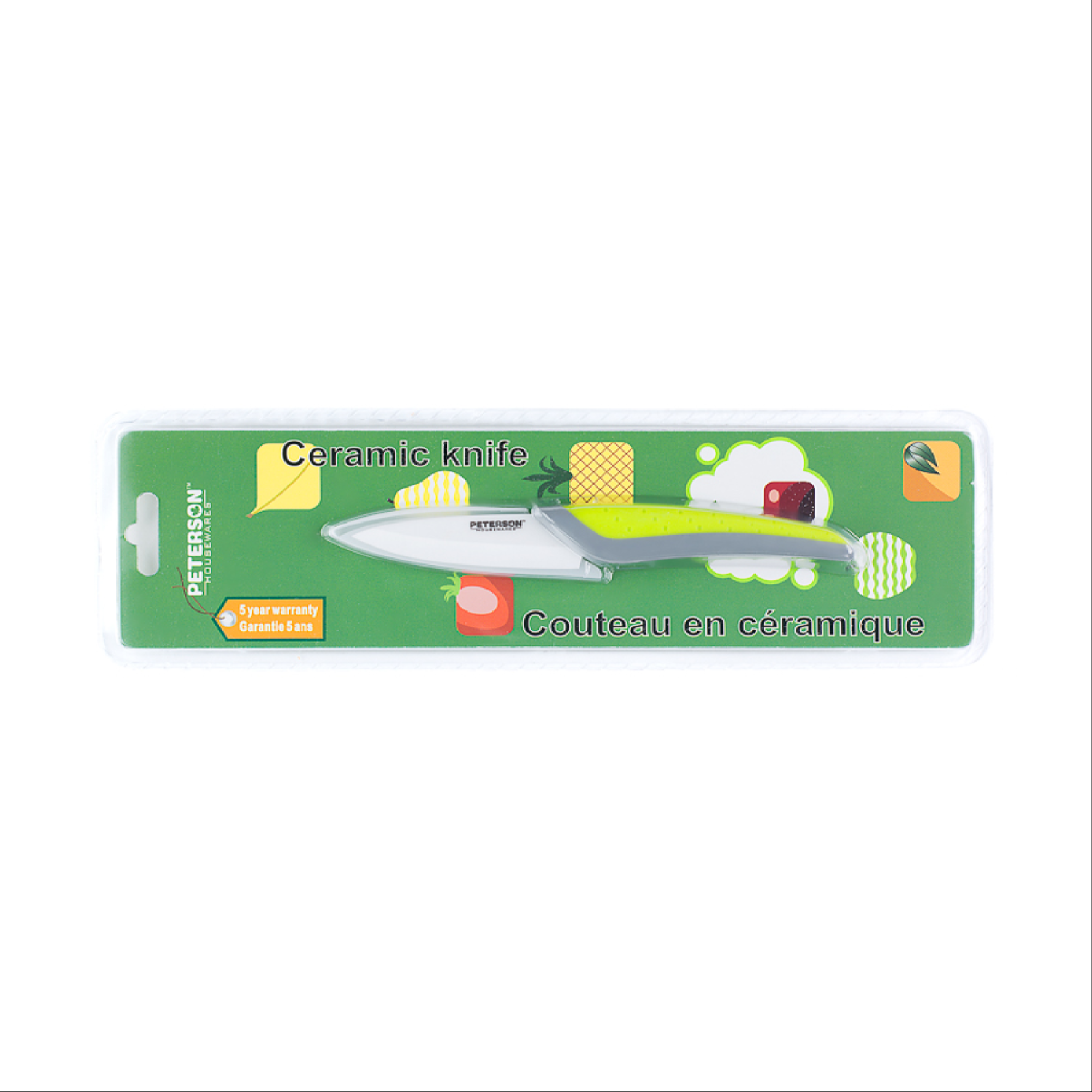 4″ CERAMIC KNIFE / GREEN & GREY TPE TWO TONE HANDLE WITH WHITE CERAMIC BLAD