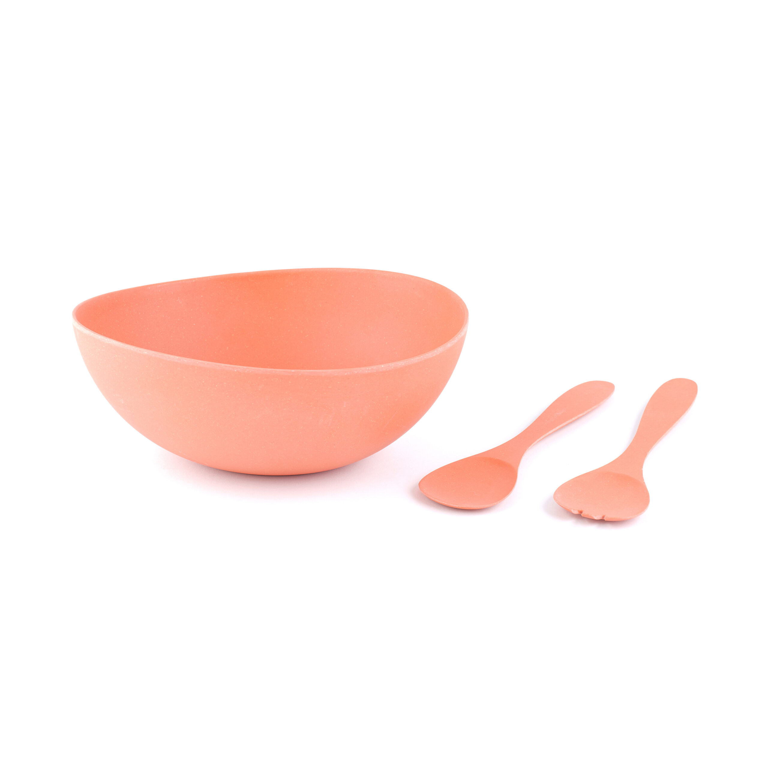COBBLESTONE BAMBOO FIBRE BOWL AND SERVER SET(10.5″ BOWL &2PCS SALAD SERVERS)-ORANGE