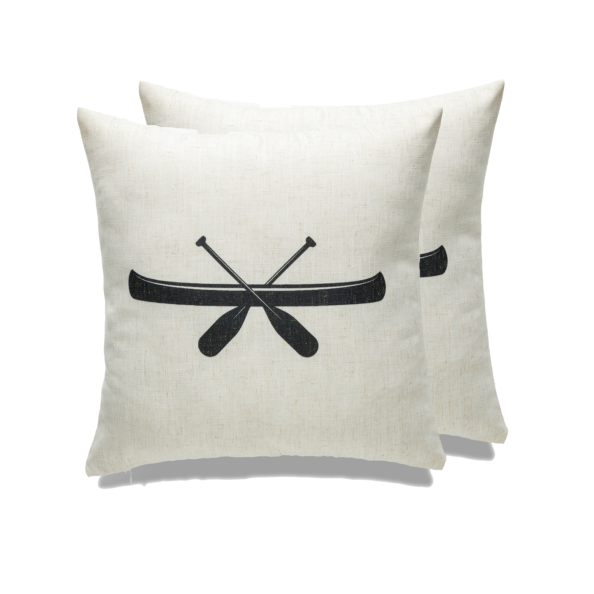 10% LINEN 90% POLYESTER RICH CANVAS DIGITAL PRINT THROW PILLOW IN SIZE 18 X 18 – CANOE – BLACK, WITH 100% POLYESTER INSERT – SET OF 2