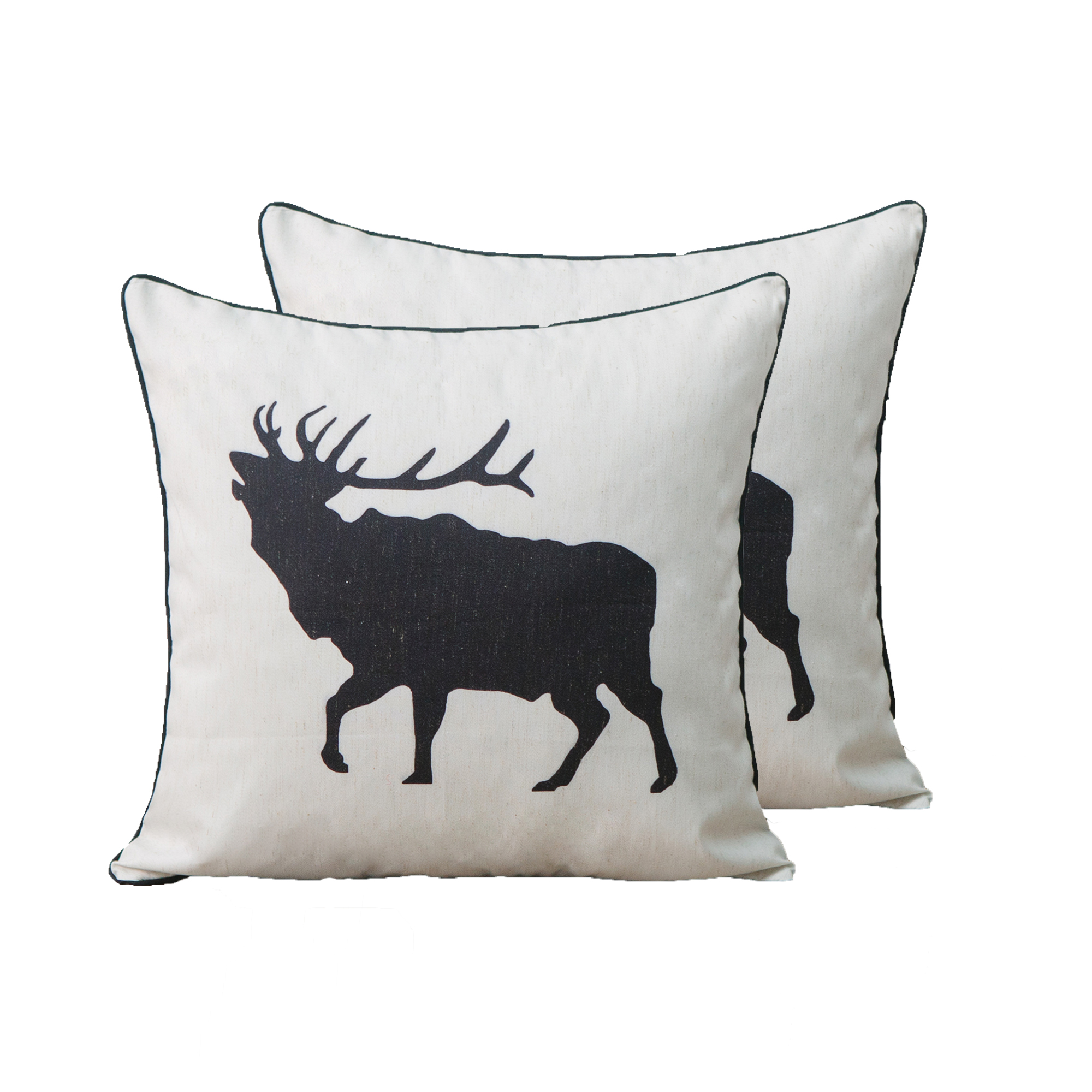 15% LINEN 85% POLYESTER ANIMAL PRINT – ELK – PILLOW COVER IN SIZE 18 X 18 WITH DTM PIPING – WITH POLY INSERT – SET OF2