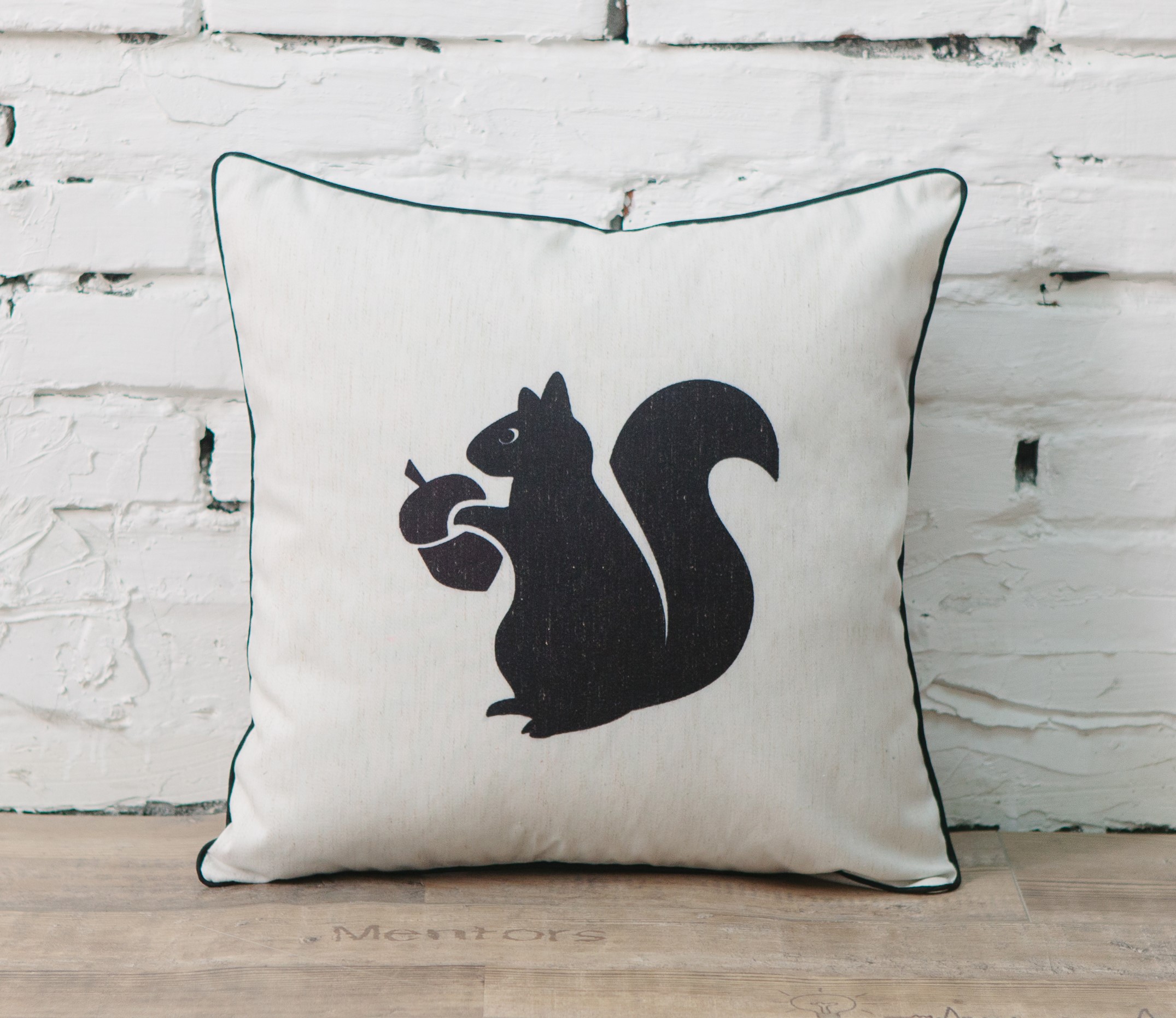 15% LINEN 85% POLYESTER ANIMAL PRINT – SQURRIEL – PILLOW COVER IN SIZE 18 X 18 WITH DTM PIPING – SET OF 2