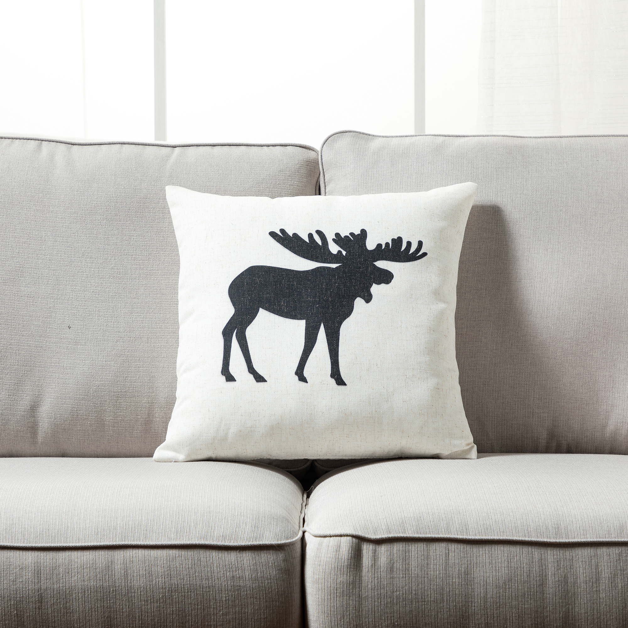 10% LINEN 90% POLYESTER RICH CANVAS DIGITAL PRINT THROW PILLOW IN SIZE 18 X 18 – MOOSE – BLACK, WITH 100% POLYESTER INSERT – SET OF 2