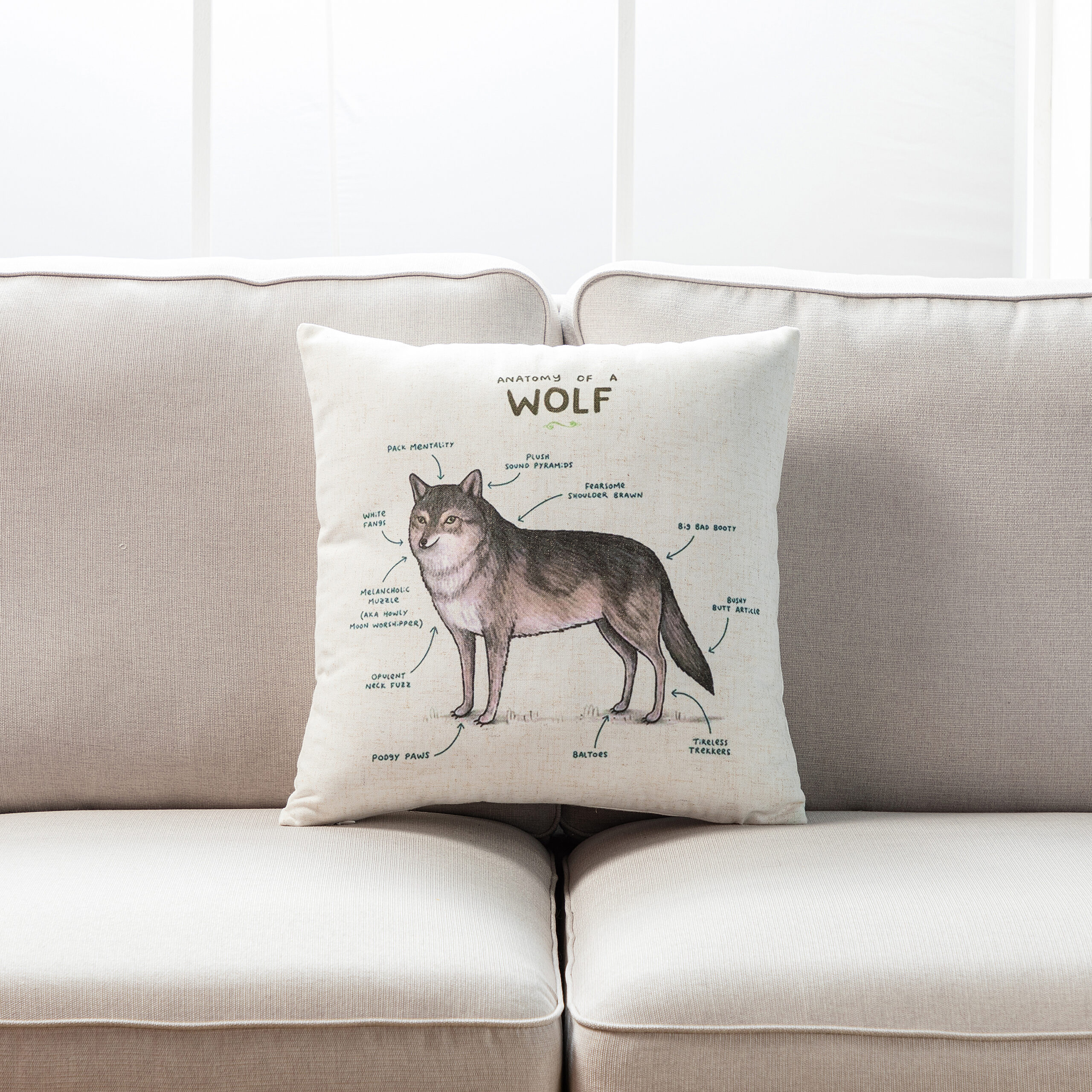 10% LINEN 90% POLYESTER ANIMAL PRINT PILLOW COVER IN SIZE 18 X 18 INCHES – WOLF-WITH POLY INSERT – SET OF 2