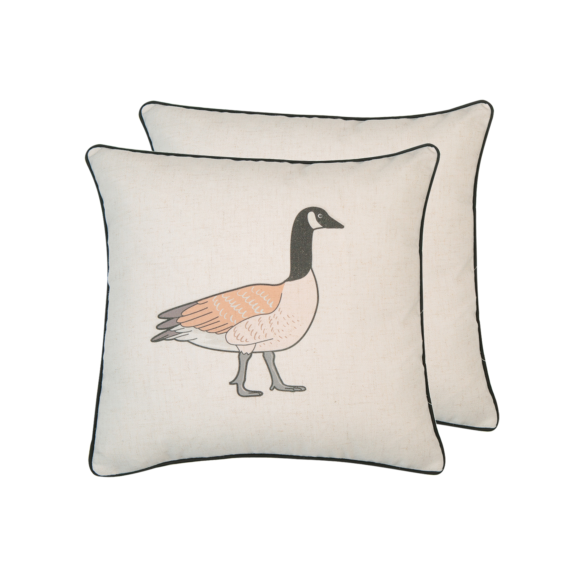 10% LINEN 90% POLY Farmhouse animals- PILLOW COVER 18 X 18 INCHES – CANADA GOOSE – WITH POLY INSERT – SET OF 2