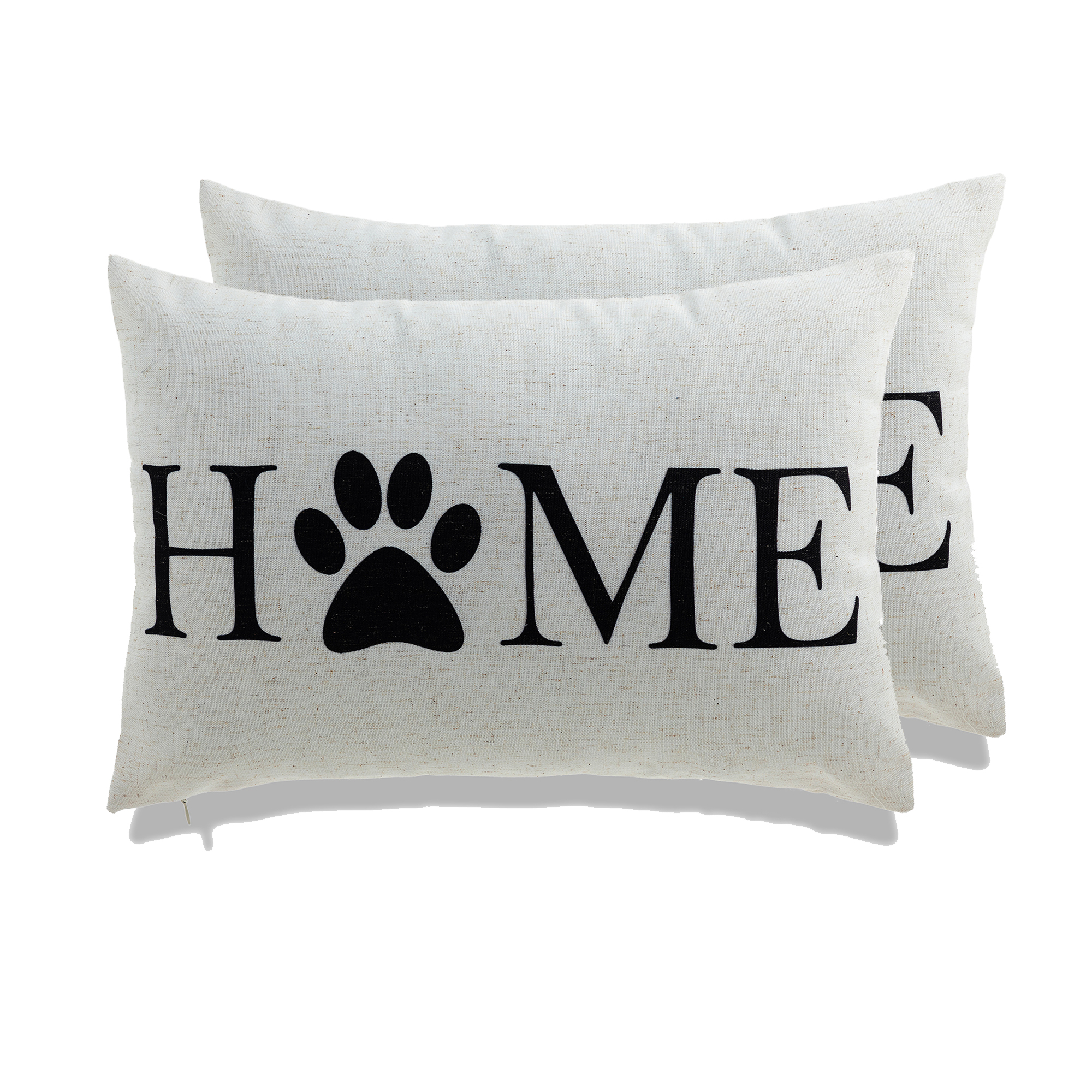 10% LINEN 90% POLYESTER CANVAS DIGITAL PRINT PILLOW WITH POLY INSERT SIZE 14 X 20 – HOME WITH PAW PRINT – BLACK – SET OF 2