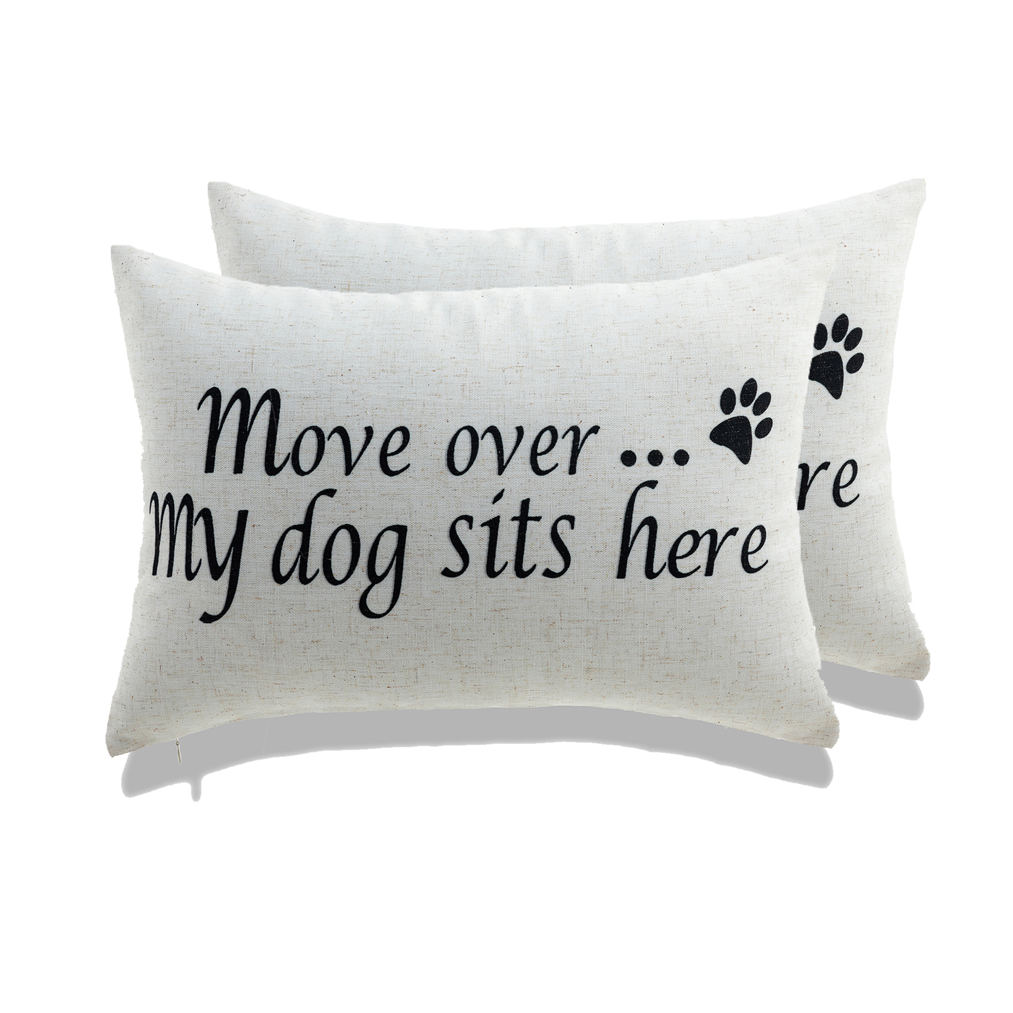 10% LINEN 90% POLYESTER CANVAS DIGITAL PRINT PILLOW WITH POLY INSERTSIZE 14 X 20 – MY DOG SITS HERE – BLACK – SET OF 2