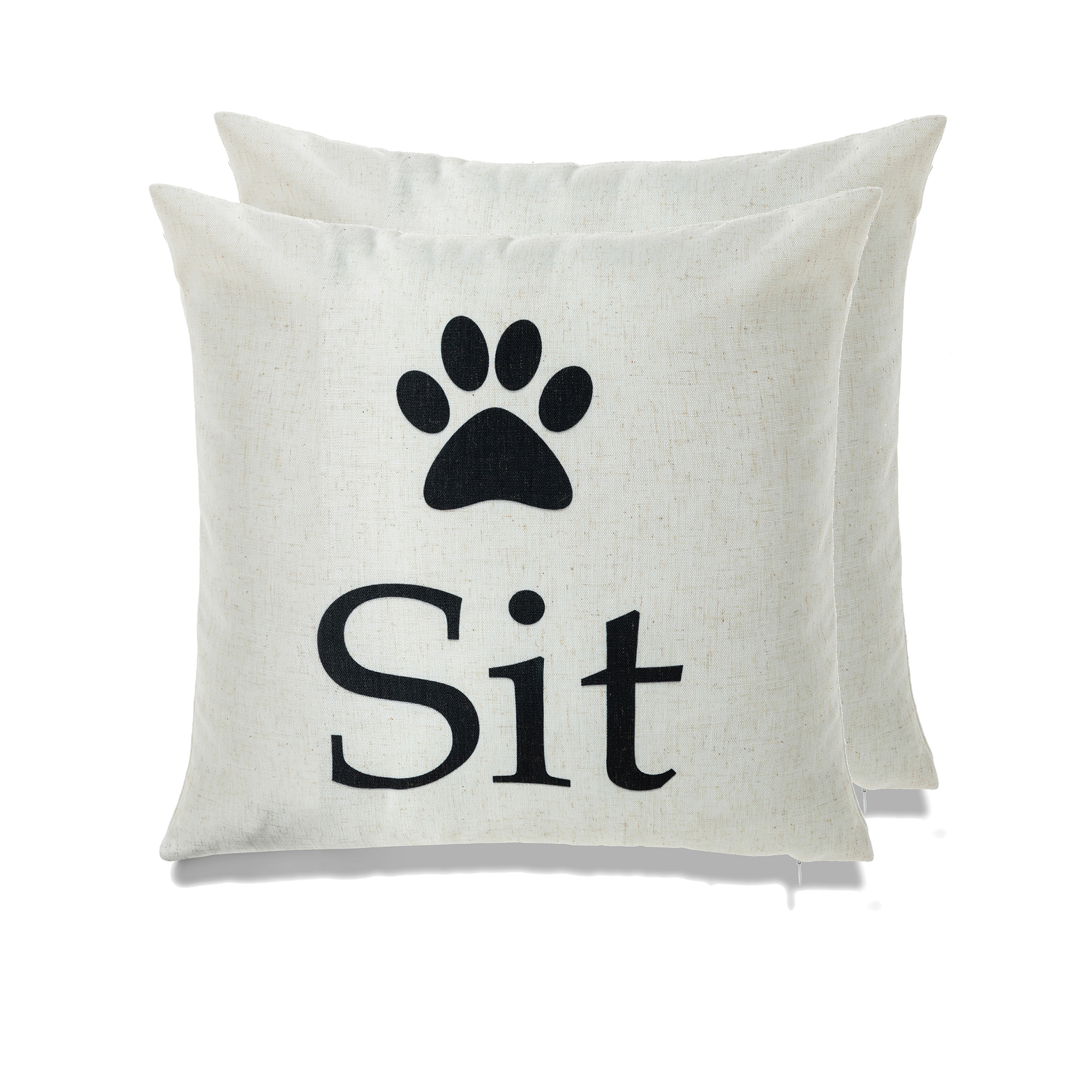 10% LINEN 90% POLYESTER CANVAS DIGITAL PRINT PILLOW WITH POLY INSERT SIZE 18 X 18 – PAW AND SIT – BLACK – SET OF 2