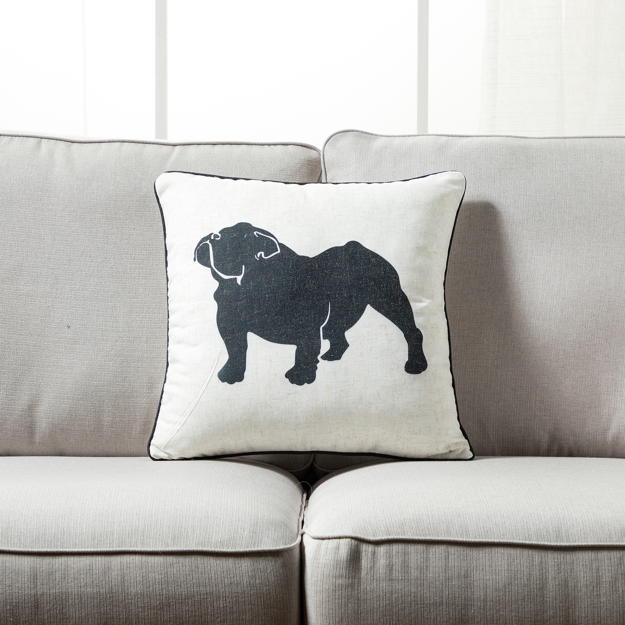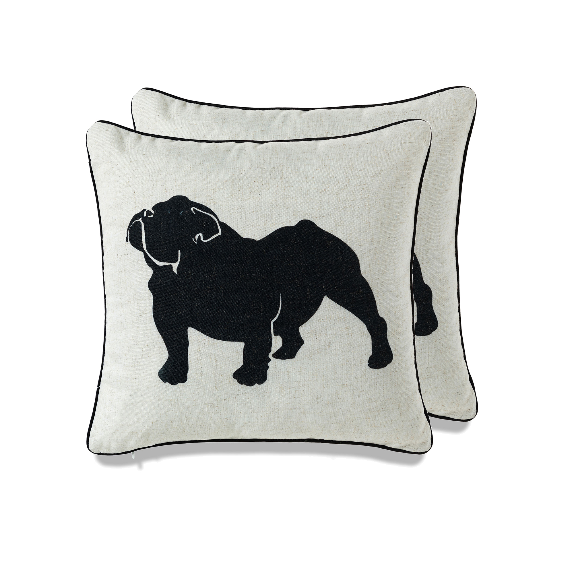 15% LINEN 85% POLYESTER ANIMAL PRINT – BULLDOG – PILLOW COVER IN SIZE 18 X 18 WITH DTM PIPING – WITH POLY INSERT – SET OF 2