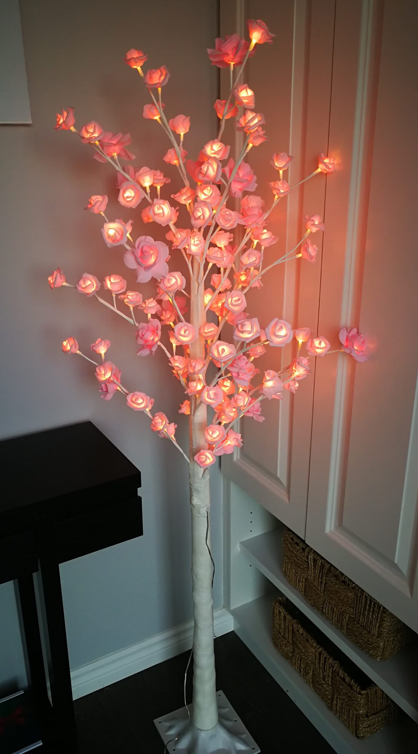 H 70″ PINK color Lighted rose tree, This lighted tree casts beautiful ambient lighting in any living space, creating a rustic atmosphere. 96 Warm LED lights,