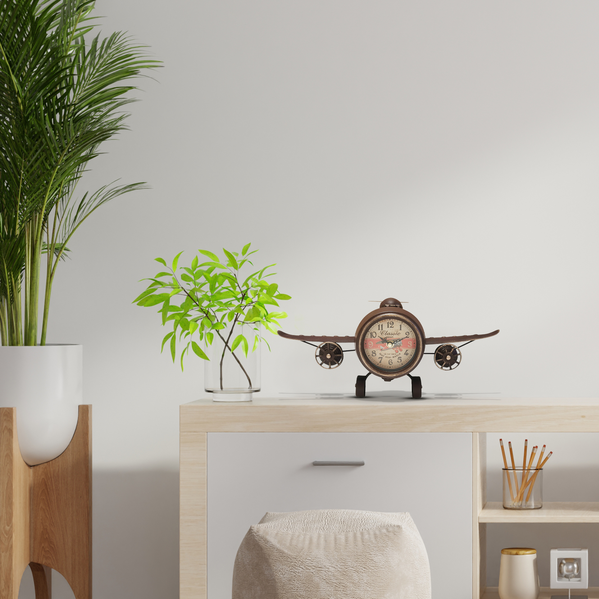 RUSTIC VINTAGE AIRPLANE TABLE CLOCK