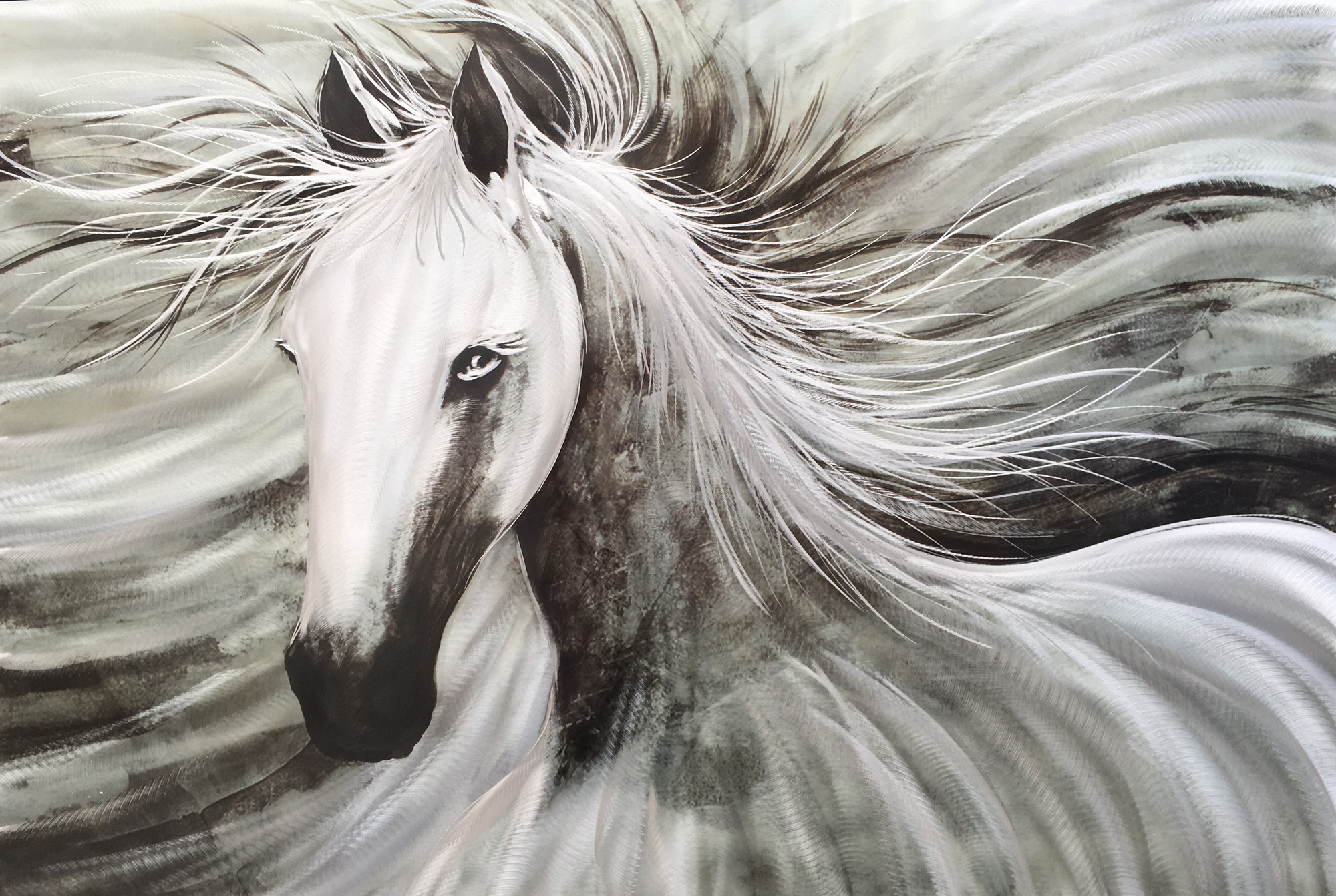 A very beautifully crafted aluminum painting, hanging at a width of 120cm and with a height of 80cm. This exquisite horse is elegantly designed and forms a very captivating picture. It will be a perfect buy for all horse lovers, as a gift- or a treat to yourself! Sander Made Art Picture