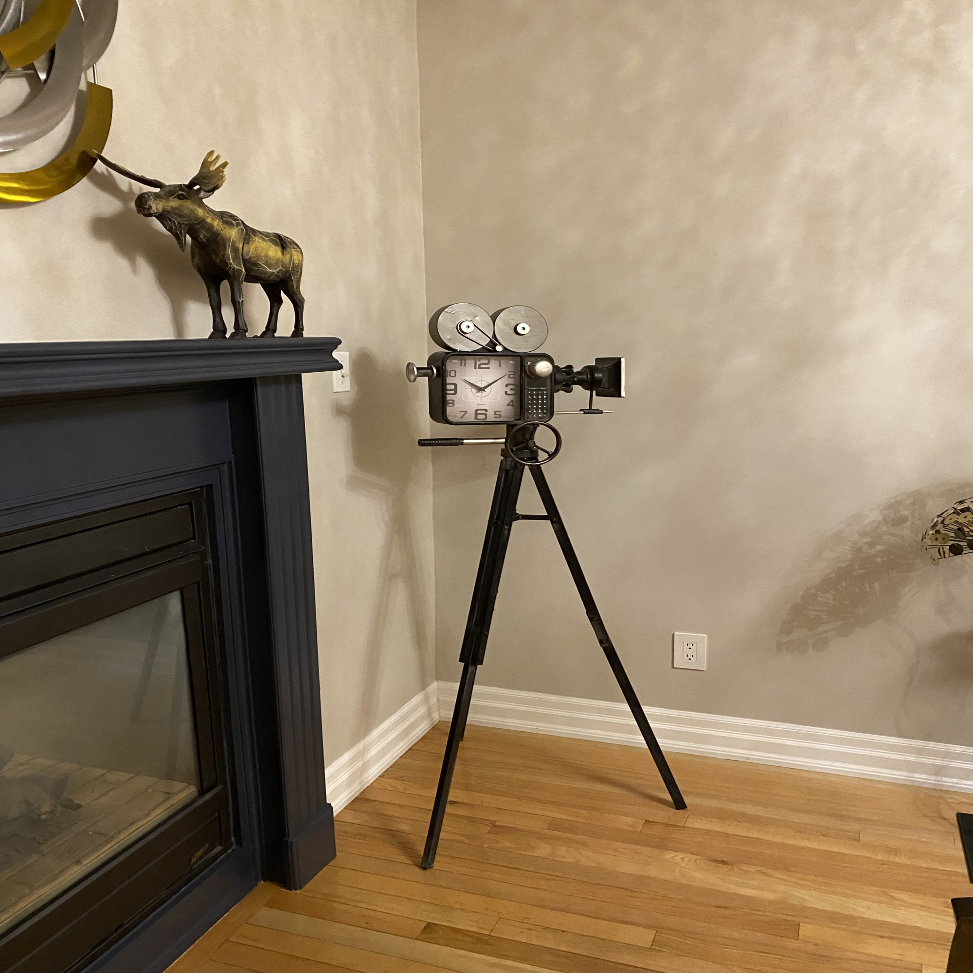 Designed as a replica of a vintage movie camera, this ornamental clock exudes retro charm and nostalgic appeal. From the intricate detailing on the lens to the classic film reel accents, every element captures the essence of old Hollywood glamour.