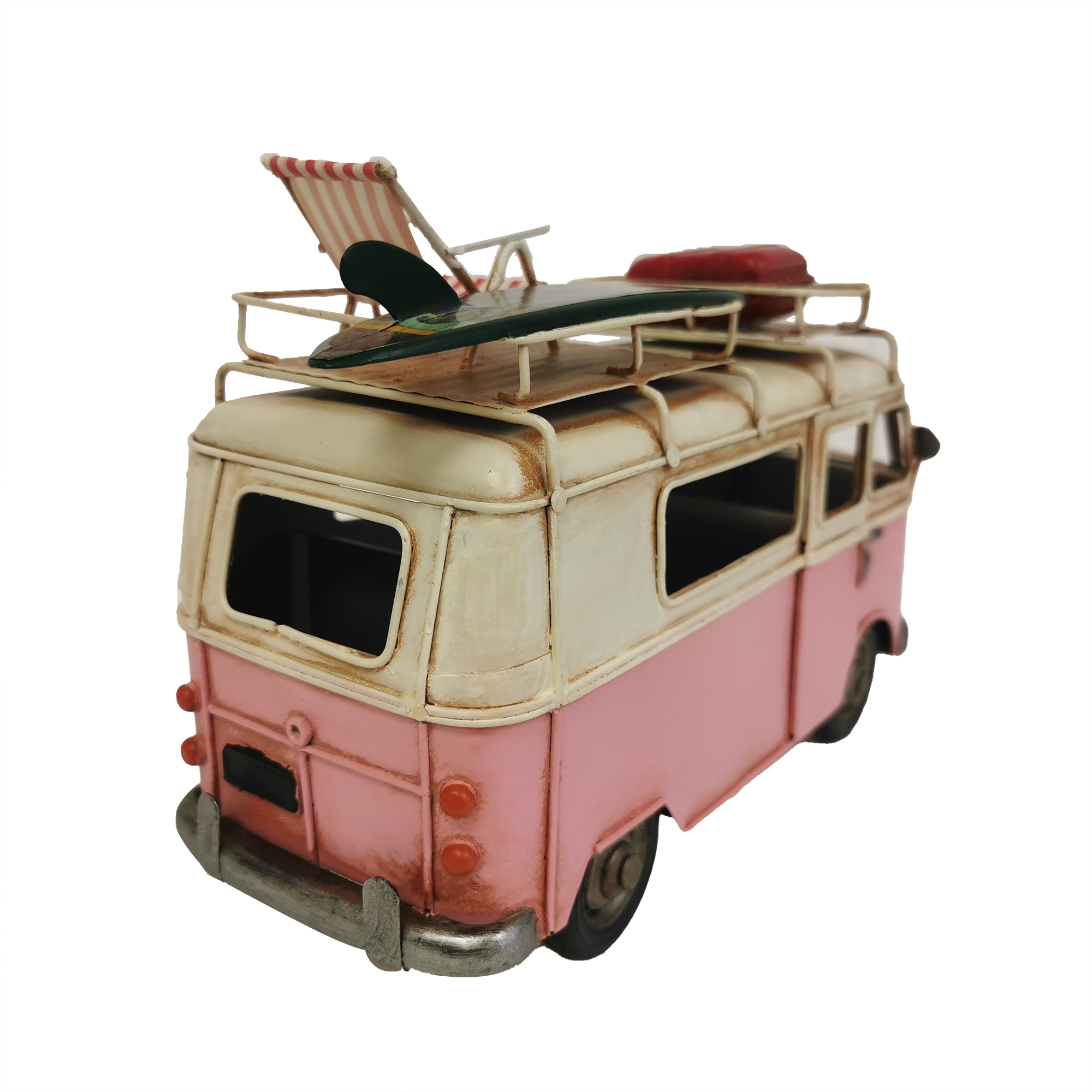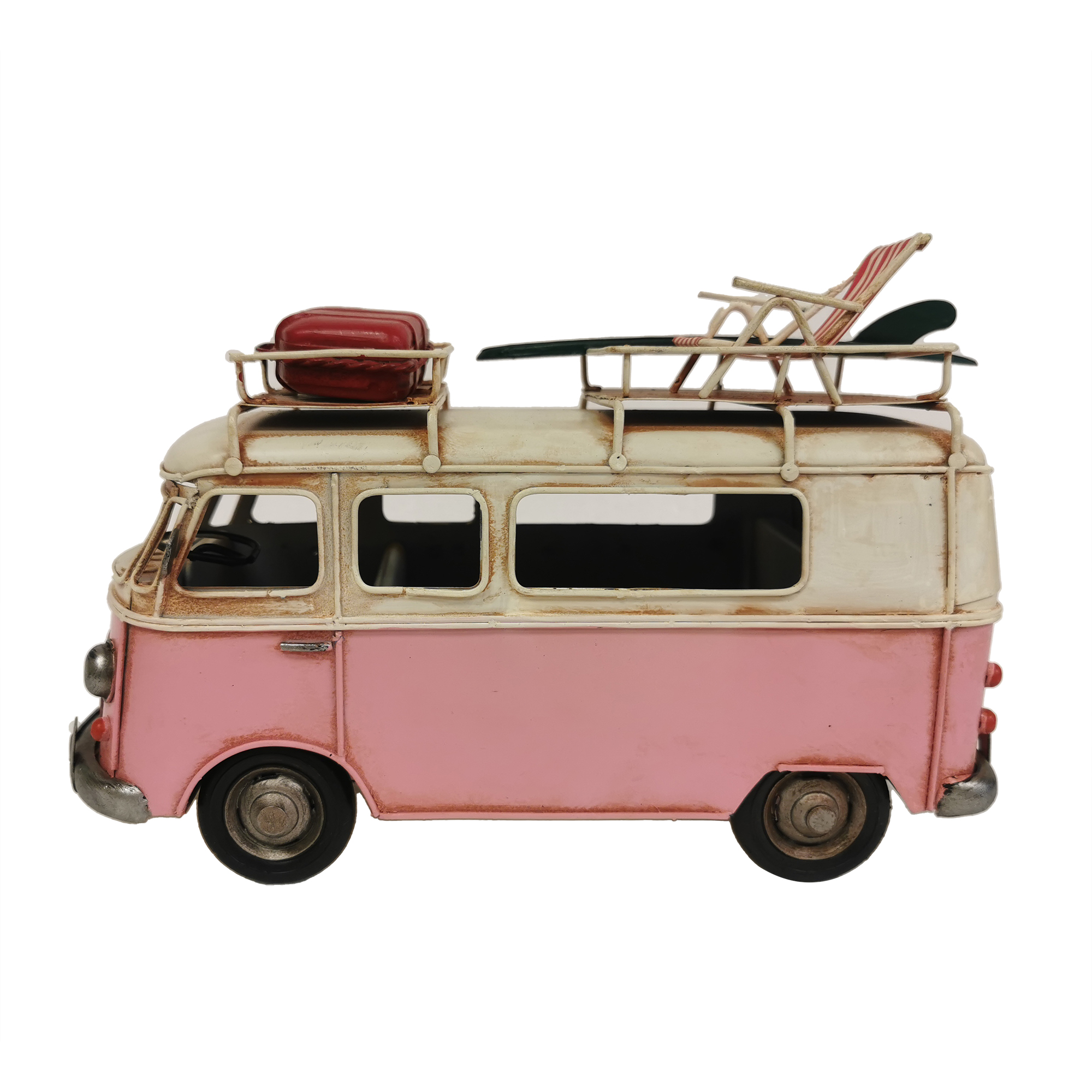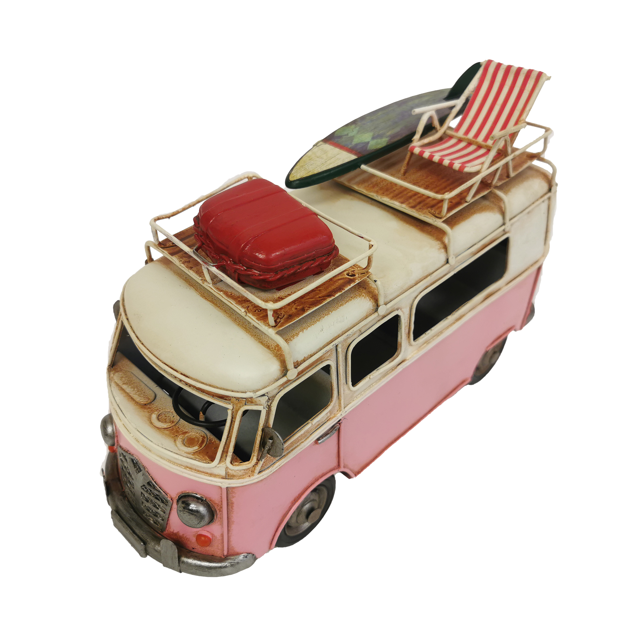 This handmade VW Pink Metal Bus Metal Model is a great way to add a rustic touch to your home décor. Perfect for displaying on a shelf, mantel, or table.