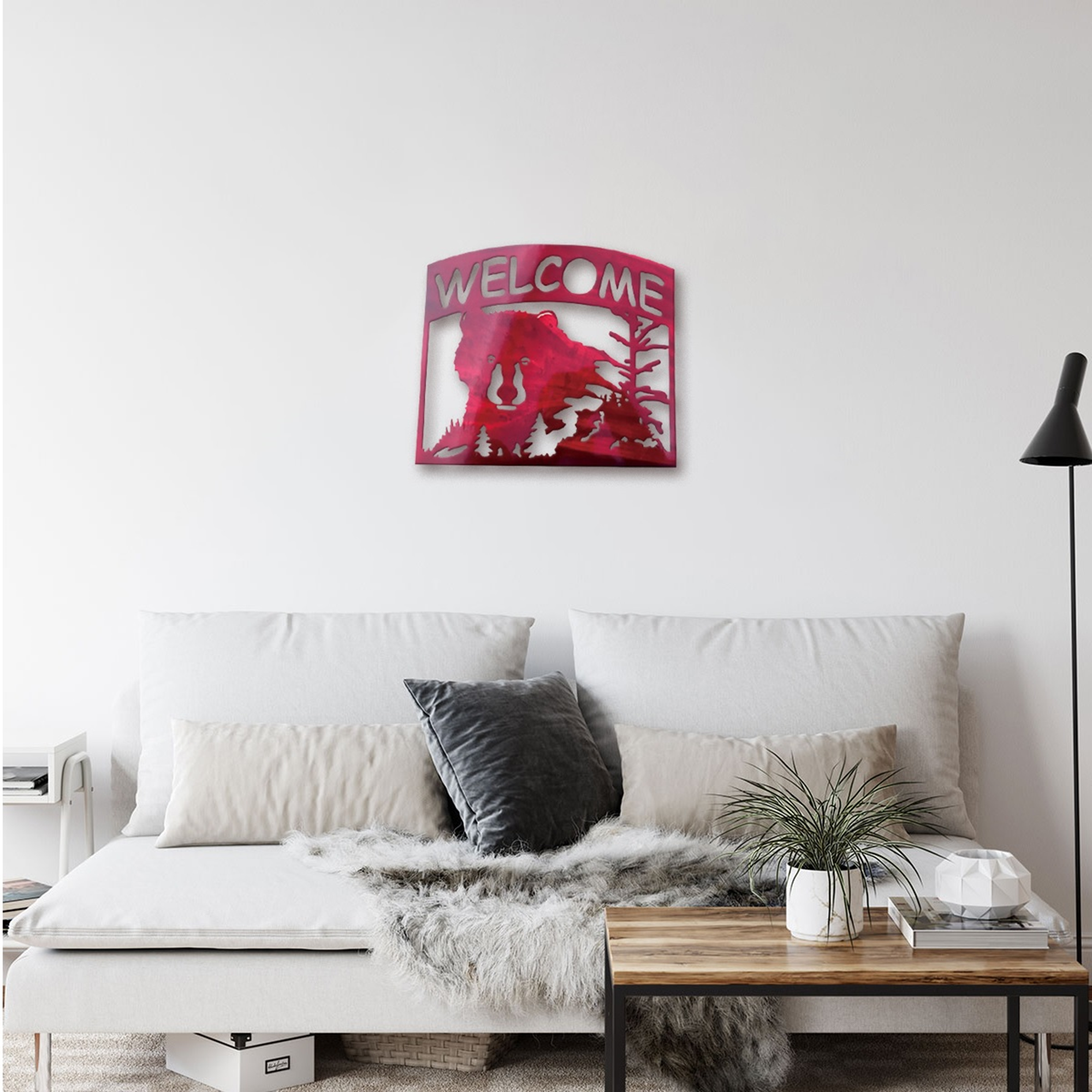 Answer to the call of the wild and hang the “Welcome” Bear Wall Art for a touch of rustic flair in your home. Handmade from metal, this unique piece of art adds texture and interest to its surroundings.